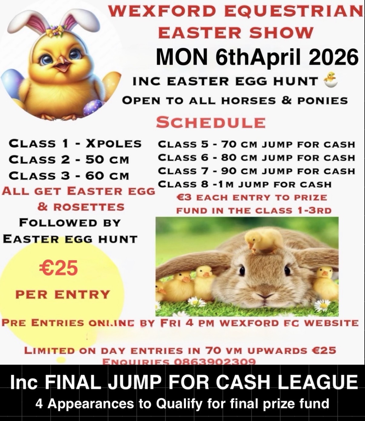 See schedules on www.wexfordequestrian.ie or call 0863902309