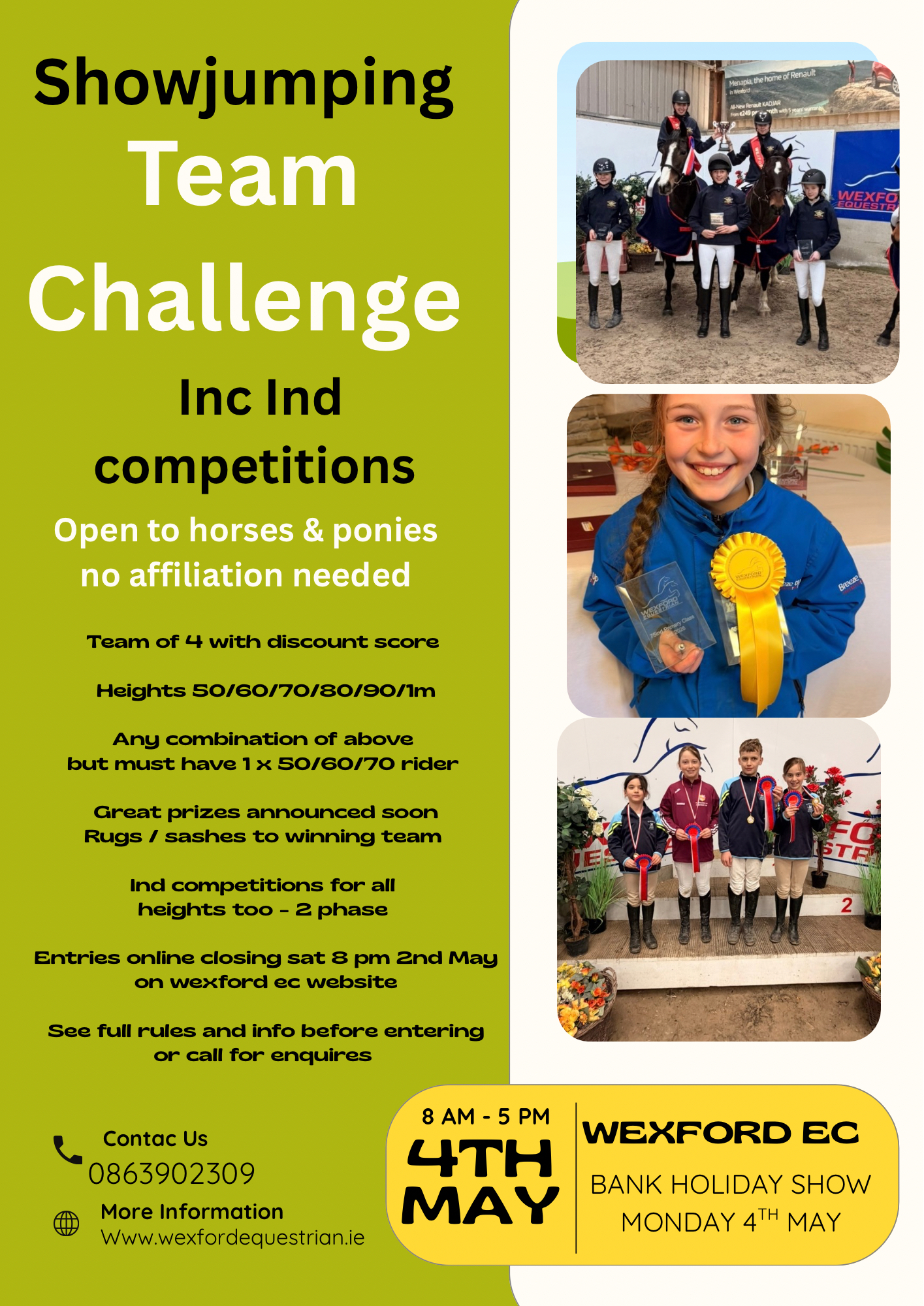 May bank holiday Monday 4th May Showjumping TEAM challenge & Ind classes