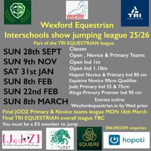 Wexford ec dates – ALL PART OF THE TRI EQUESTRIAN LEAGUE AND WEXFORD EC NOVICE/PRIMARY LEAGUE