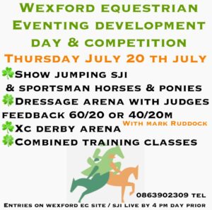 ALL ENQUIRIES TO 0863902309 OR info@wexfordequestrian.ie